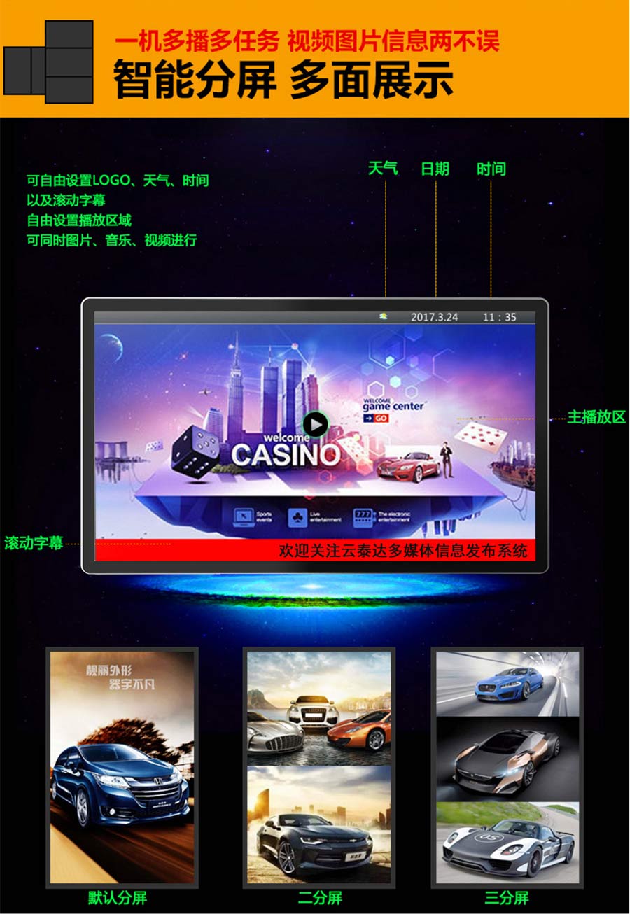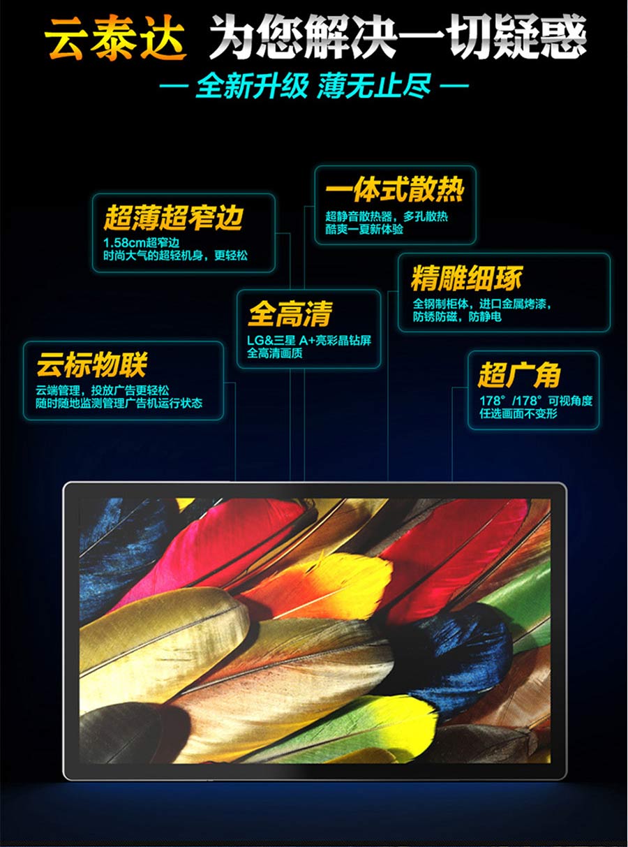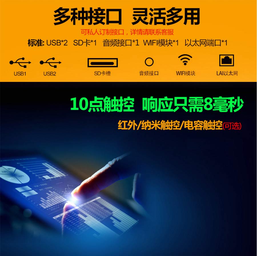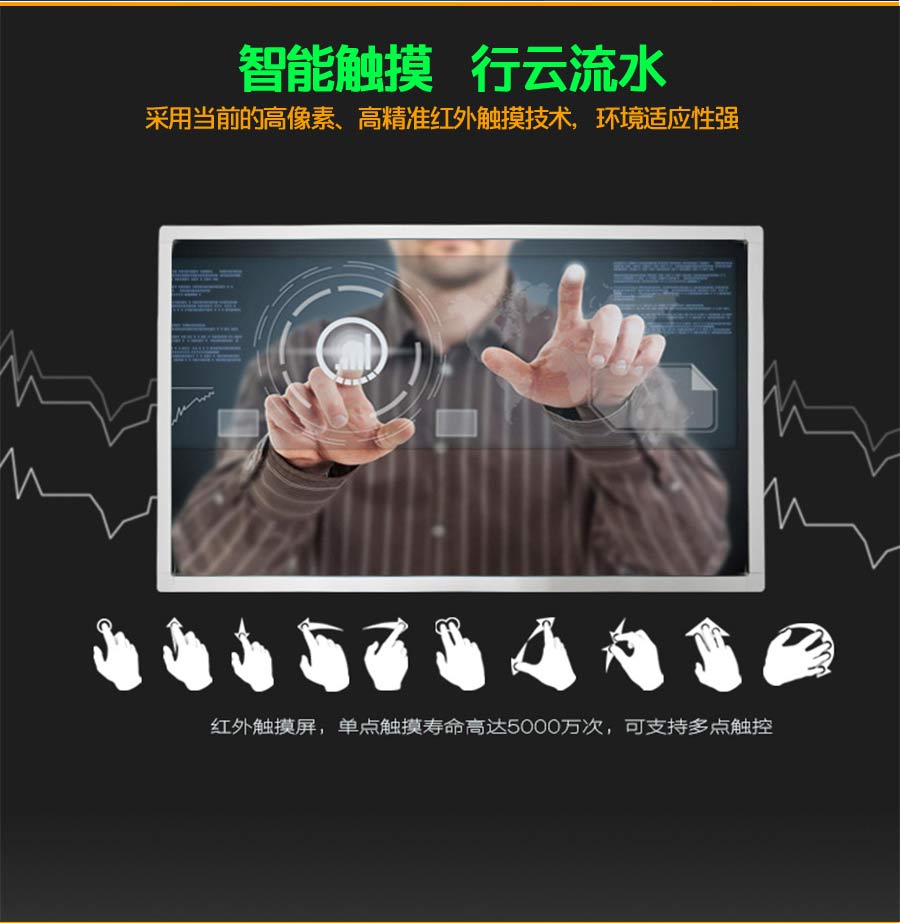主營業務:滑軌屏、全息展示柜、觸摸一體機、廣告機等;
