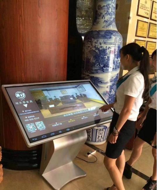 客戶可以在臥式觸摸一體機機子上,自己用手指輕輕一觸,就可以三維角度放大縮小查看產品介紹,查看企業的故事。核心可以展示連鎖店自己的大量案例,可以直接在線下單。