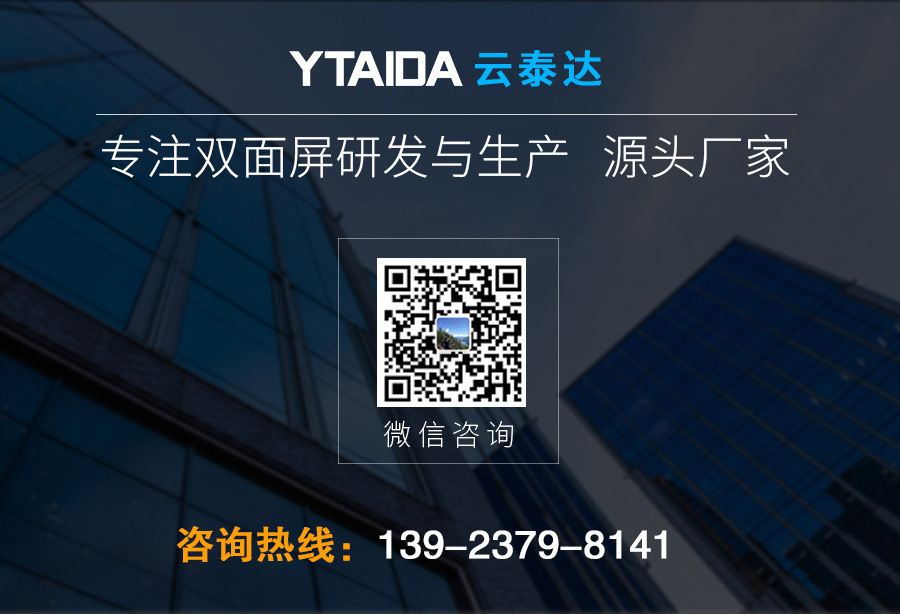 商場櫥窗雙面廣告機的面世不但承繼了單屏液晶廣告機的特性,它也有自身不共的優點。針對單屏液晶廣告機,像落地廣告機、壁掛廣告機等