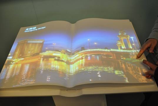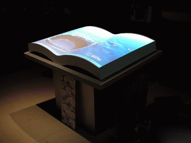 虛擬翻書系統就是虛擬電子書,又稱虛擬翻書、感應翻書、電子翻書、互動翻書、魔幻書等,虛擬電子書猶如一本打開的書籍,里面可以記載豐富的資料(包括動畫、視頻、圖片)。參觀者可以揮動手臂“翻閱”書籍,自左向右或者自右向左,還可以選擇章節(jié),快速找到您想翻閱的內容,就像翻閱一本普通的雜志一樣,這就是虛擬翻書系統帶來的驚喜!這種虛擬翻書形式新穎,視覺沖擊力強,給人以神奇感,而且可以展示的信息量大。