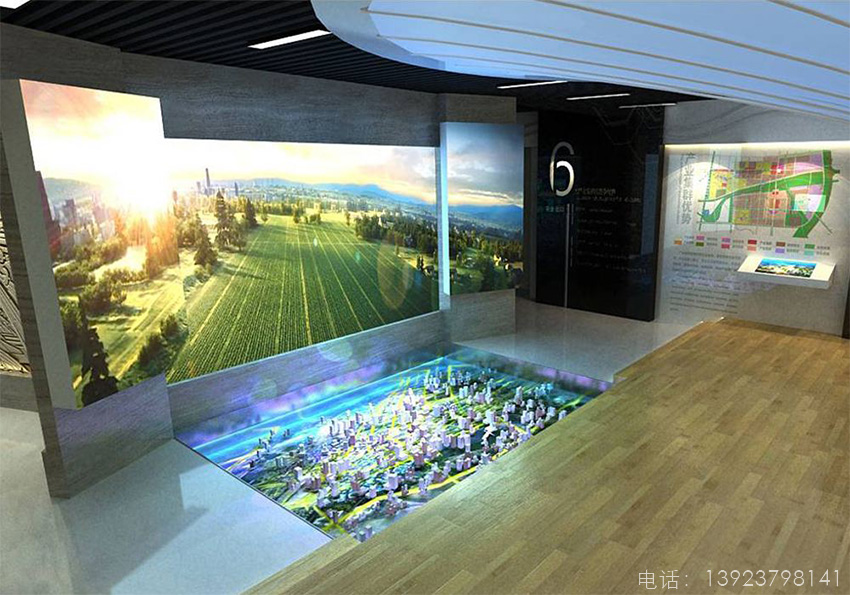 定義:結合LED聲光電效果、互動性、大型視野展示系統,展示效果更加的直觀。還可以通過大屏控制沙盤模型,實現人機互動。