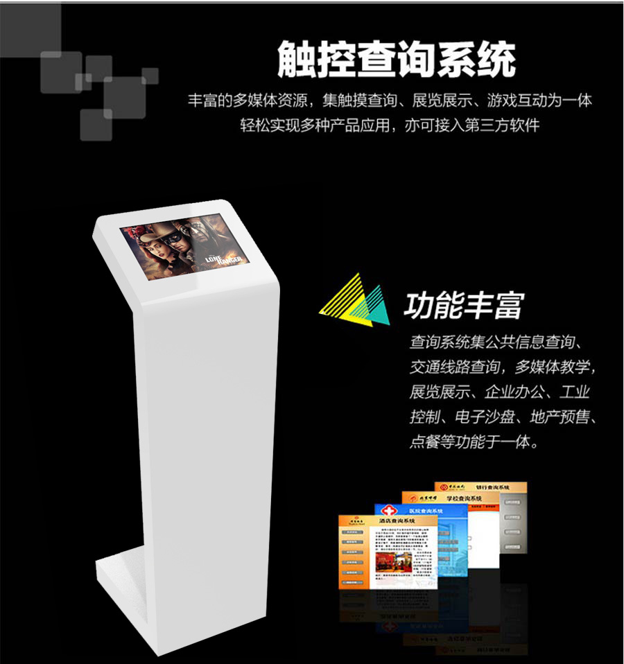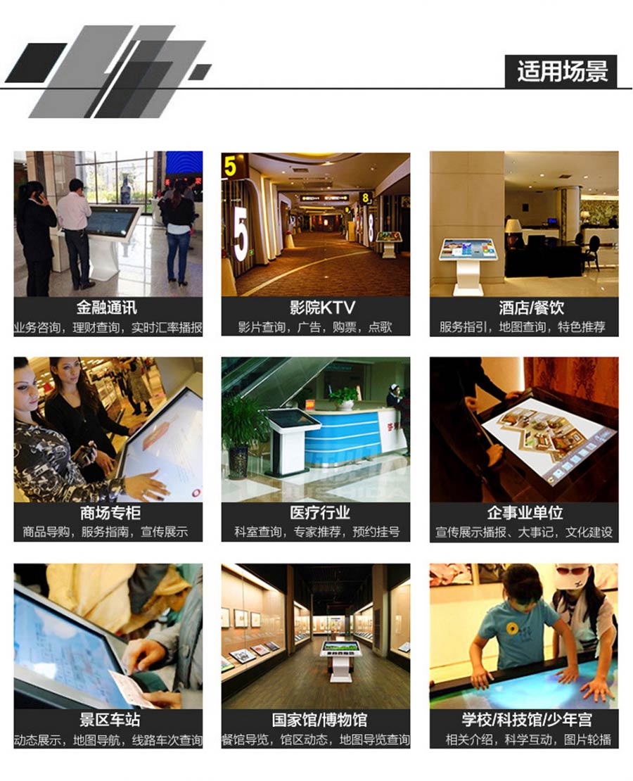 主營業務:滑軌屏、全息展示柜、觸摸一體機、廣告機等;