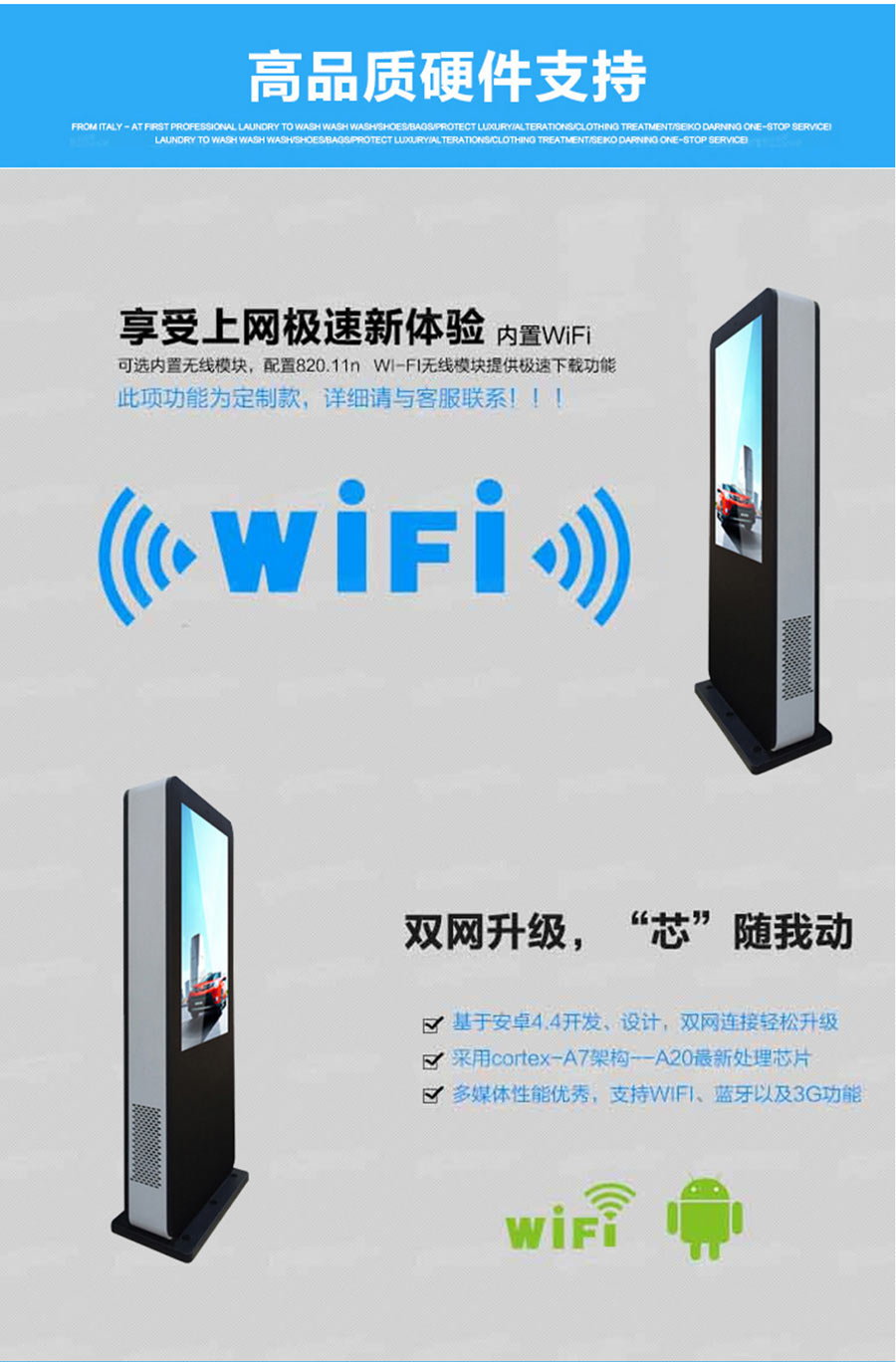 主營業務:滑軌屏、全息展示柜、觸摸一體機、廣告機等;