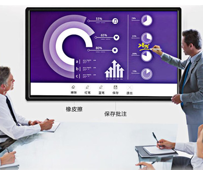 ◆會議系統:在會議中,將交互式觸摸屏上的圖像可以手寫批注等要點加以保存,使與會者的注意力更加集中。通過交互式觸摸屏可使會議內容更加完整、溝通更加深入,實現會議資料同步共享,有效地提高會議效率和質量。