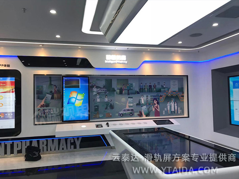 使用場景:智慧滑軌屏主要是在一些展廳展館和博物館等,一方面這種互動方式會更吸收參觀者來觀看,更好地做到宣傳的作用。另一方面,液晶屏所承載的信息量宏大,它能夠?qū)⒛軌蚋嗟乇磉_主辦單位想要傳送的信息,一旦參觀者走近該展項,大屏幕系統(tǒng)立即啟動,真正完成了自動化控制,能夠多個檢測點同時控制,使整個展廳愈加生動隨機,真正完成省電節(jié)能,低碳環(huán)保。